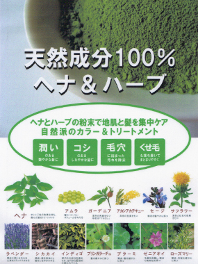 天然100%無農薬ハーブへナカラーも導入しているのでロハス思考な方にも対応できます。